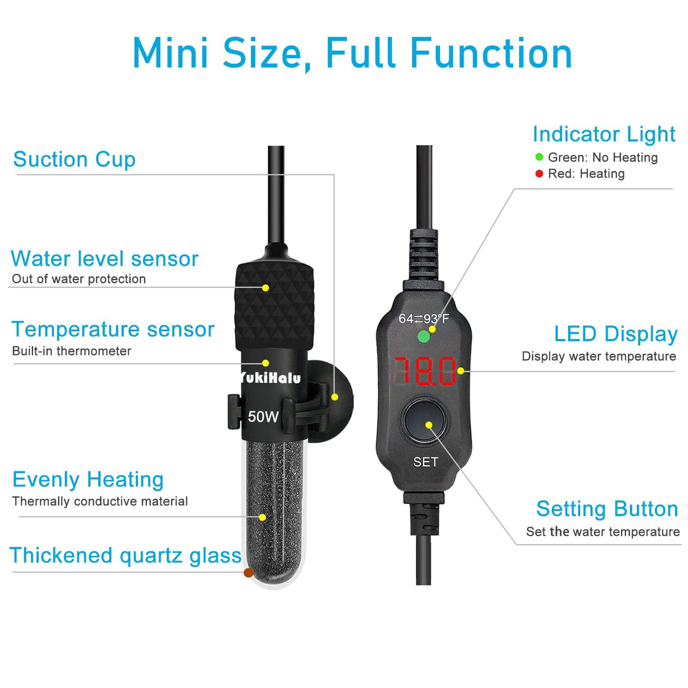 Yukihalu Small Submersible Aquarium Heater, Adjustable Mini Fish Tank Heater 25W 50W 100W 200W 300W With External Temperature Co