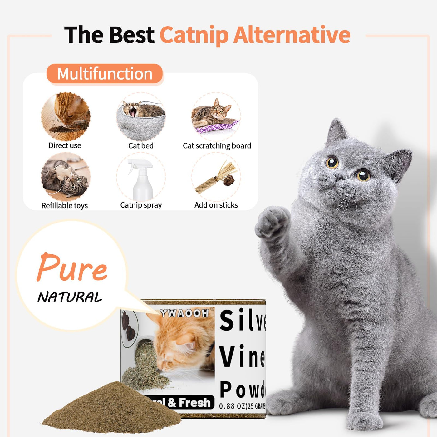 Ywaooh Cat Toys - Silvervine Powder For Cats, 100% Natural Catnip Alternative, 25G (0.88Oz), Safe For All Cat Ages, Matatabi Gal