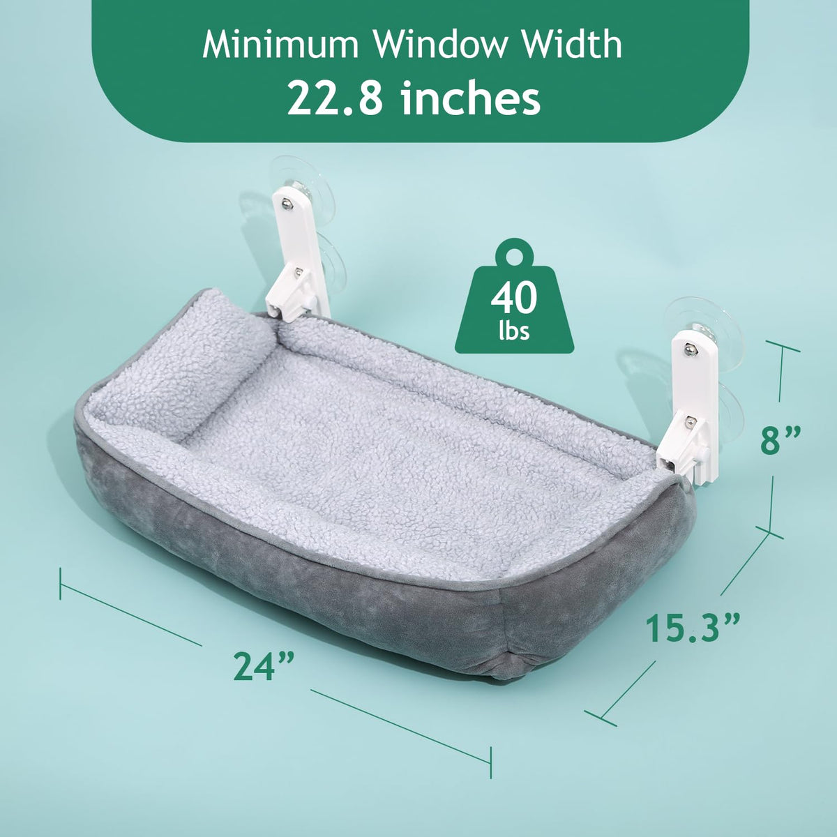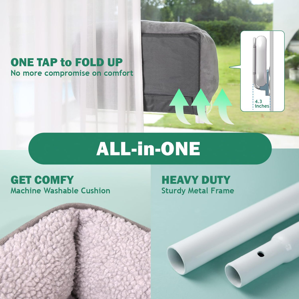 Zakkart Foldable Cat Hammock For Window With Bolster - Cordless, Fold-Up, Three-Side Bolstered Machine Washable Fluffy Bed, Robu