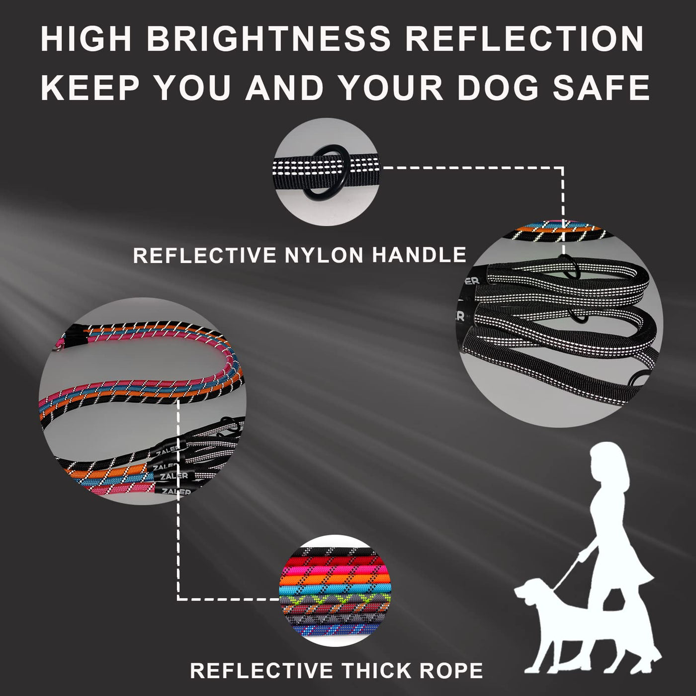 Zaler Rope Dog Leash - 4/5/6/10/15/20/30/50 Foot Reflective Leashes With Carabiner, Heavy Duty For Large And Medium Dogs (6Ft, B