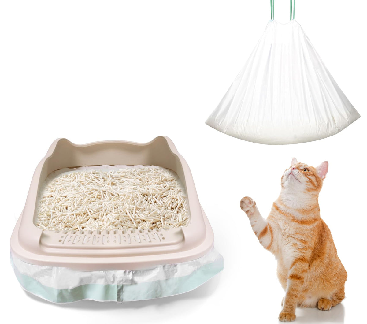 Zeling HTL Jumbo Cat Litter Box Liners 40 Ct - Extra Large 37 x 18 Drawstring Litter Pan Liners, 2 Mil Thick Scratch-Resistant,