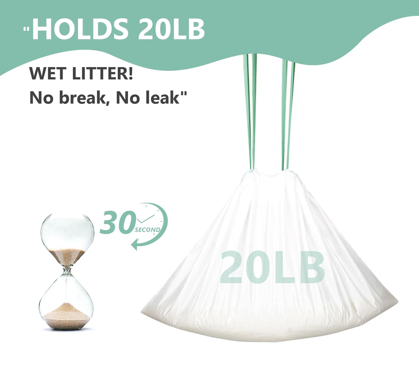 BPA/Phthalate-Free cat litter bags made with compliant PE plastic - safe when cats dig or kittens chew. | 2mil Claw-Resistant Armor: Lab-tested 2mil thickness withstands daily clawing. Holds 20lb wet litter without tears - zero leaks even with 10+ lbs of clumped waste. | Jumbo Size for Deep Boxes: 37x18 jumbo cat litter box liners fit deep pans up to 18 (45cm) - 8% longer than standard 36 bags. No side gaps with 4-6 litter depth. | 40 Bags = Fewer Hassle Trips: 40 hefty litter liners per box - lasts 9 months for 1-cat homes (weekly changes). For multi-cat households: 2 cats = 4.5 months (vs. 34-ct packs needing 25% more purchases). | Dust-Free Drawstring Cleanup: Double-stitched drawstrings seal waste in 3 seconds -