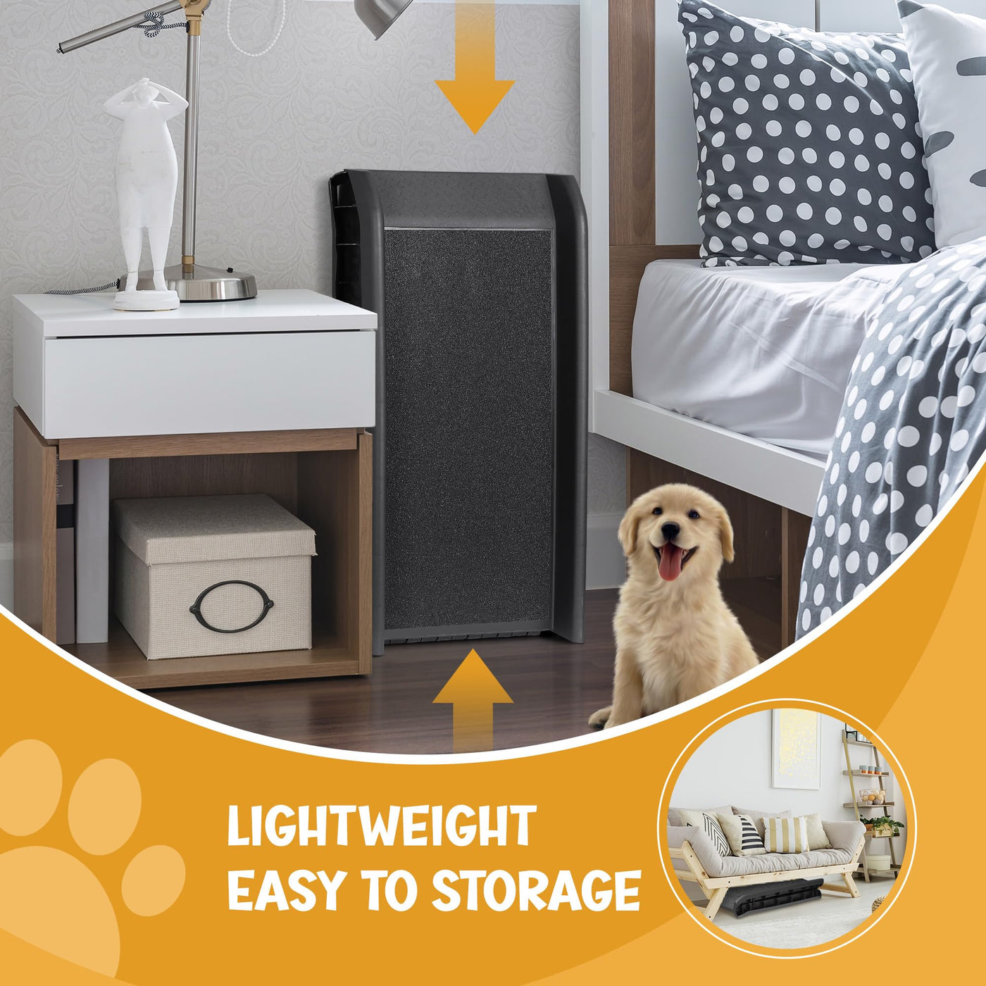 Zeny Dog Car Ramps, Lightweight Dog Stairs Support Up To 150Lbs, Foldable Pet Ladder Ramp With Nonslip Surface For Beds, Trucks, Cars And Suv Warm Note:Out Pet Ramp Is Suitable For Vehicles With A Ground Distance Of No More Than 23 Inches, There Is A Risk Of Tipping Over If It Is Too High Features Sturdy And Durable Lightweight, Easy To Carry And Storage With Rubber Feet On Bottom To Keep From Slipping Anti-Skid Surface Provid Great Traction For Pets Foldable Designed With A Safety Release Lock Easy To Assemble Specification: Color: Black Main Material: Pp Product Size(Unfolded): 61.2'' X 15.6'' X 5.5'' (L X W X T) (Folded): 31.1''X15.6''X7.3''(L X W X T) Weight Capacity: 150 Lbs Net Weight: 9.8 Lbs Package Includes: 1 X Pet Ramp 1 X Instruction