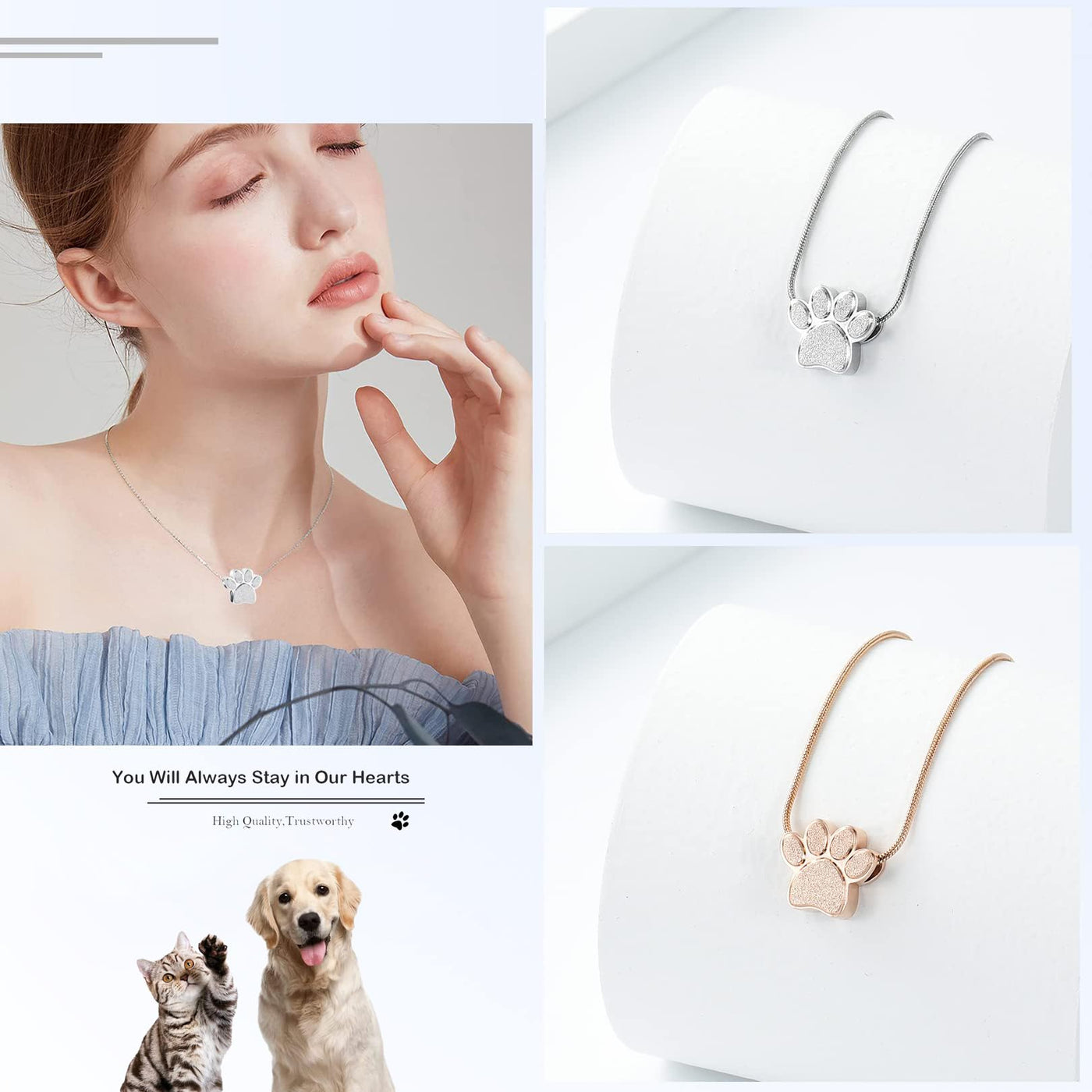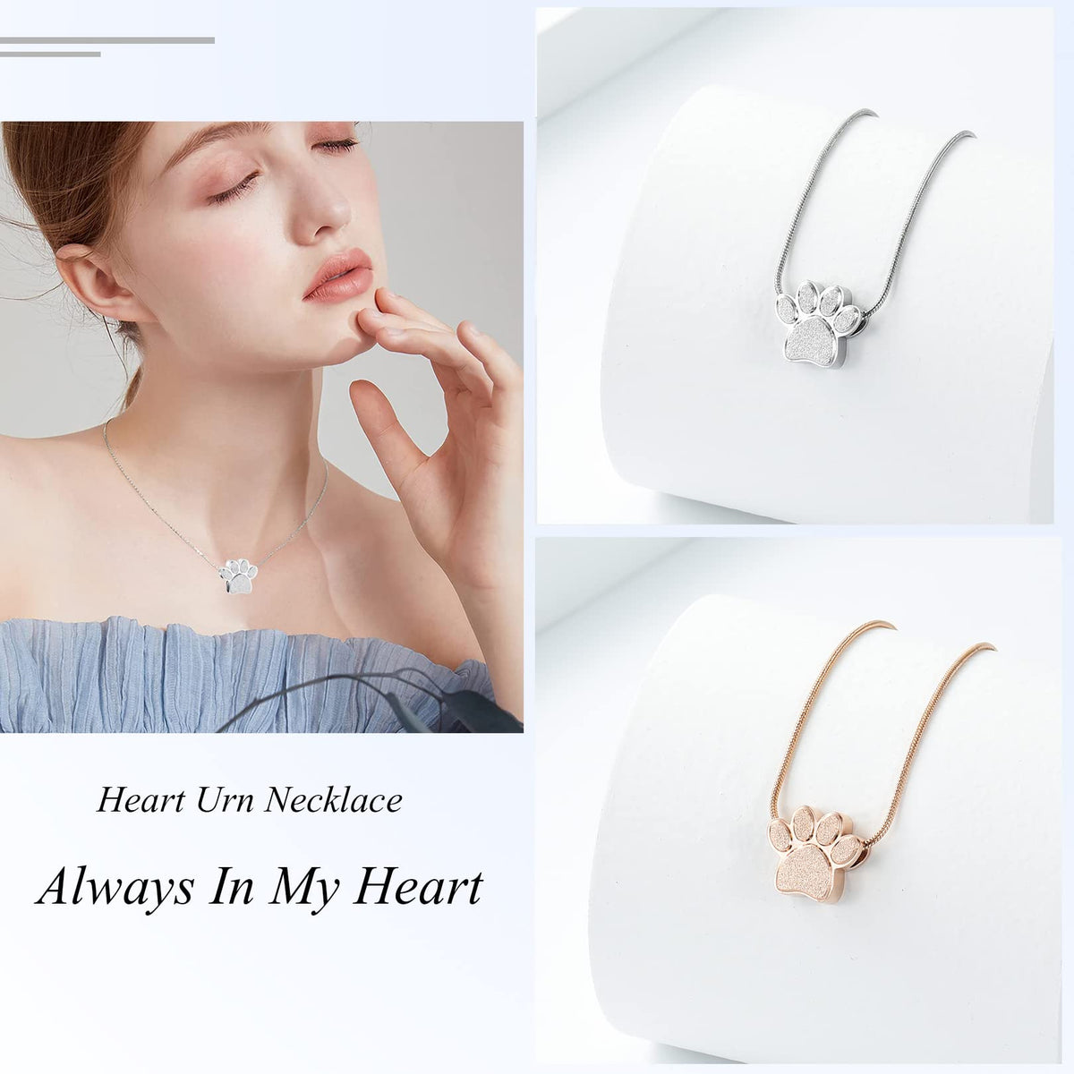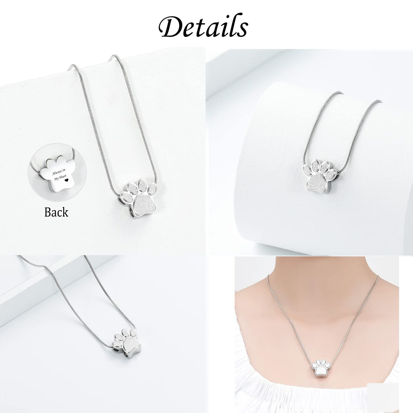 Zeqingjw Pet Cremation Jewelry For Ashes Pendant Paw Print Pet Heart Urn Necklace Memorial Keepsake Jewelry For Pet/Dog'S/Cat'S Ashes (Silver-K)