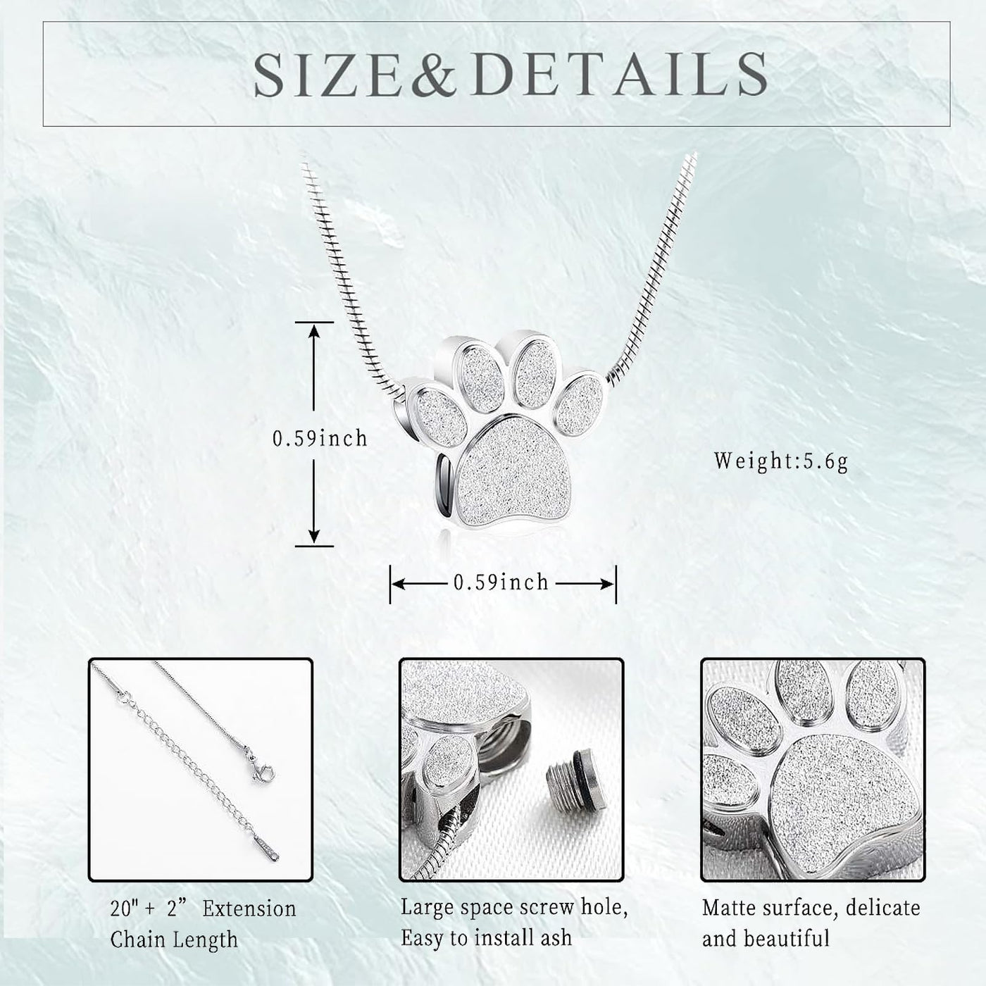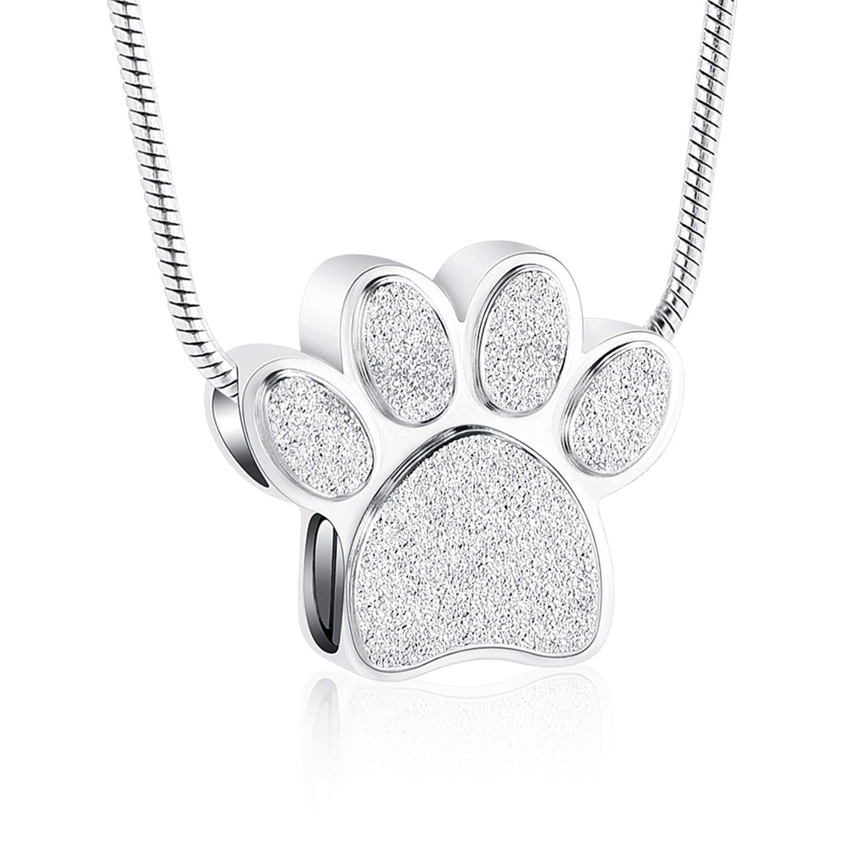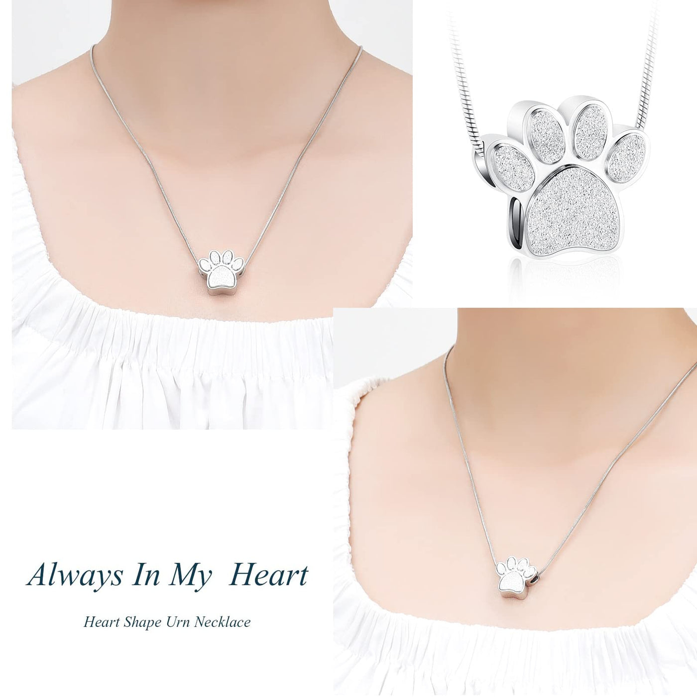 Zeqingjw Pet Cremation Jewelry For Ashes Pendant Paw Print Pet Urn Necklace Urn Pendant Keepsake Memorial Ash Locket Holder Neck