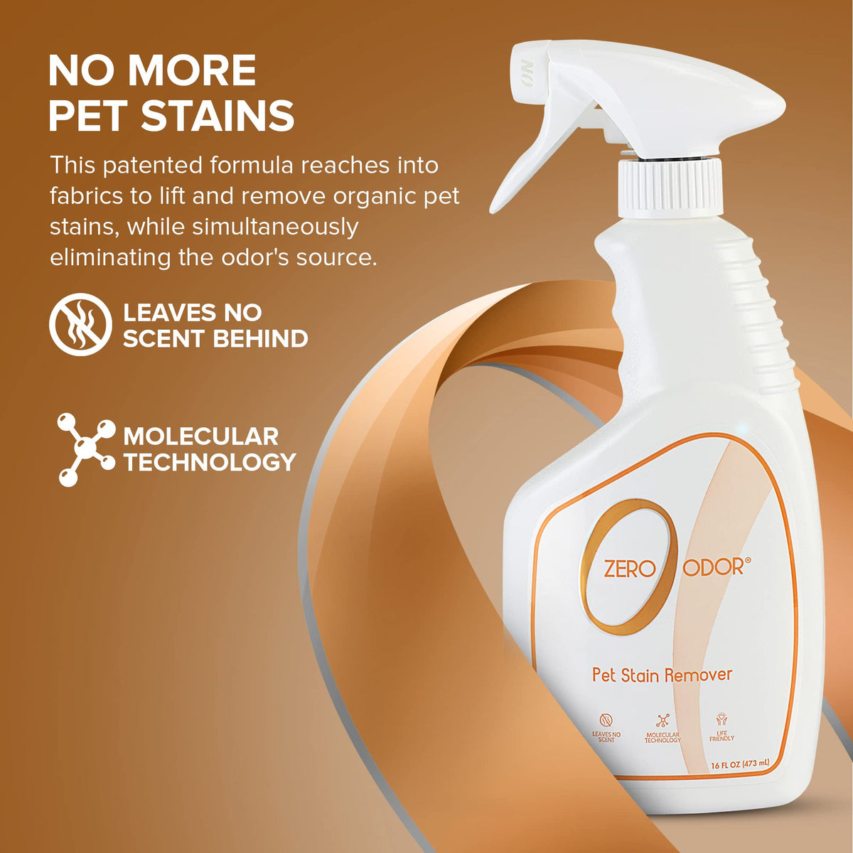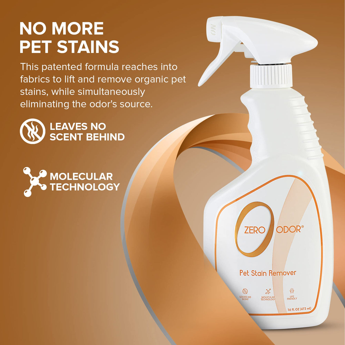 Zero Odor - Pet Stain Remover & Odor Eliminator - Permanently Remove Stain & Odor With Patented Technology Best For Carpet, Furniture, Floors, Pet Bed– Look And Smell Great, 16Oz (Over 400 Sprays)