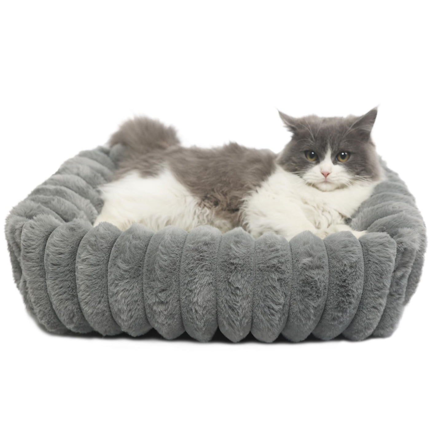 Zihapgpzp Small Cat Beds For Indoor Cats Washable Furry Kitten Beds With Sides,Rectangle Orthopedic Soft Calming Comfy Sleeping