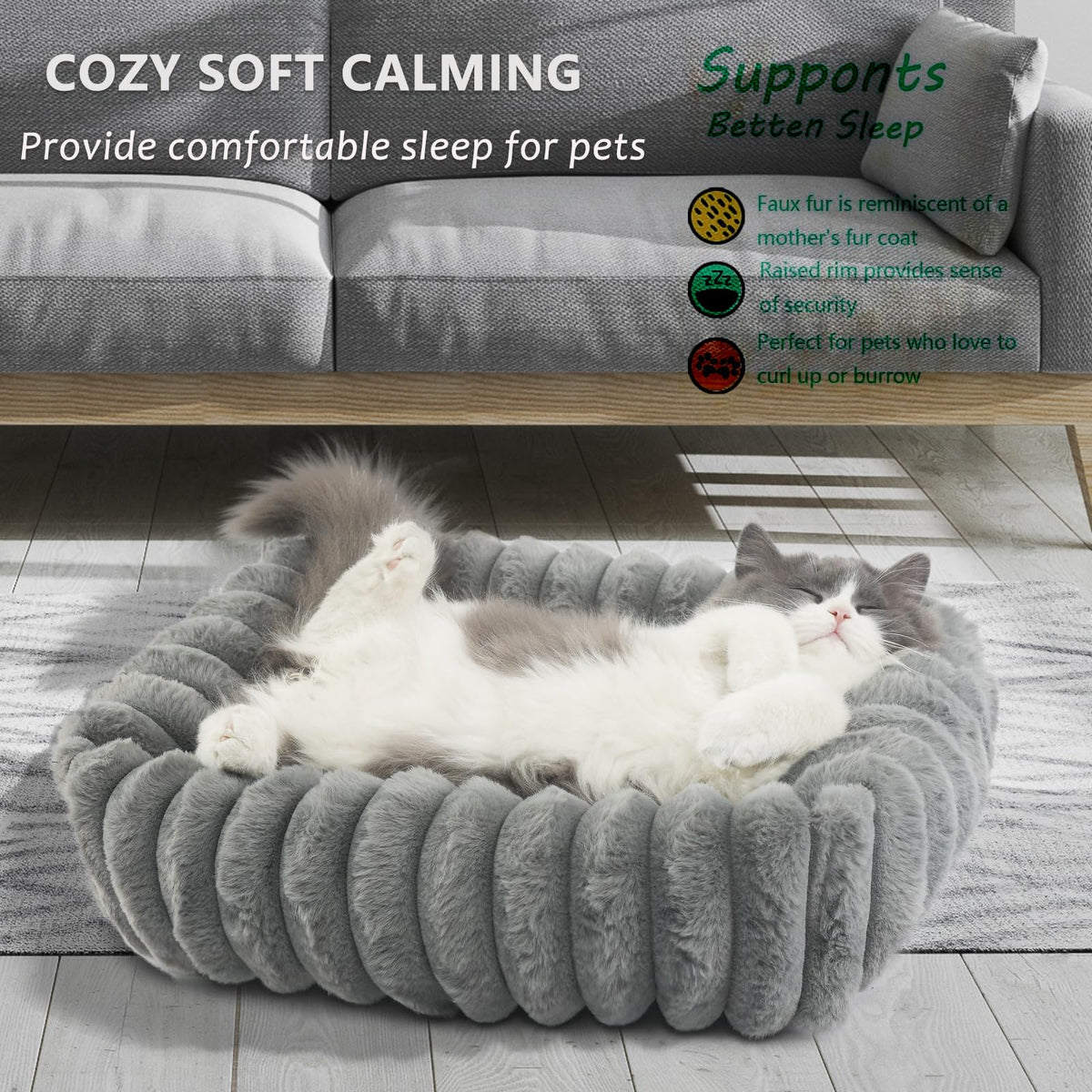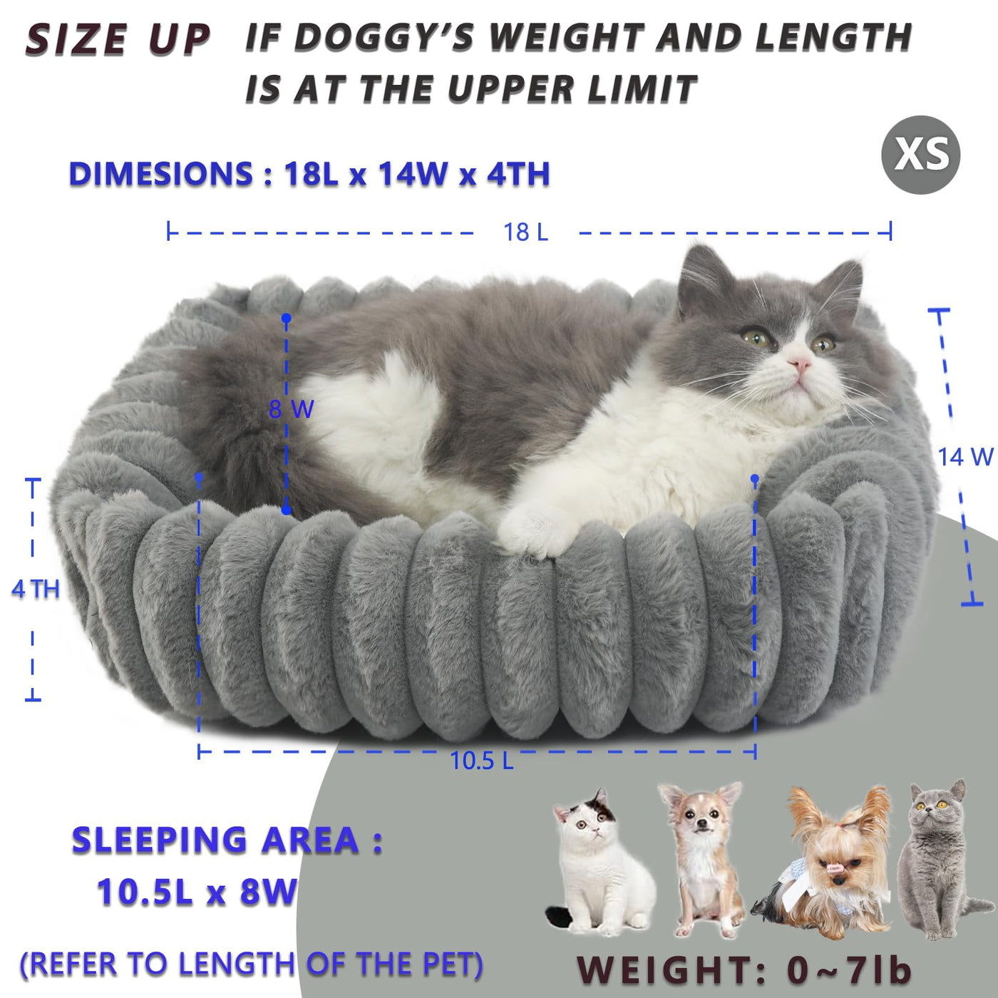 This Cozy Small Animal Bed Is Ideal For Indoor Cats, Small Dogs, And Puppies. Measuring 18X14X4 Inches, It Features Raised Sides For Extra Head And Neck Support, Offering Orthopedic Comfort. Crafted From Soft Faux Fur With Thick Polyester Filling, It Creates A Plush, Calming Sleep Environment. The Washable Design Ensures Hassle-Free Cleaning, While The Anti-Slip Bottom Keeps The Bed Securely In Place. Perfect For Pets Who Love To Curl Up And Relax, This Warm Grey Doggie Beds For Small Dogs Combines Comfort And Practicality.
