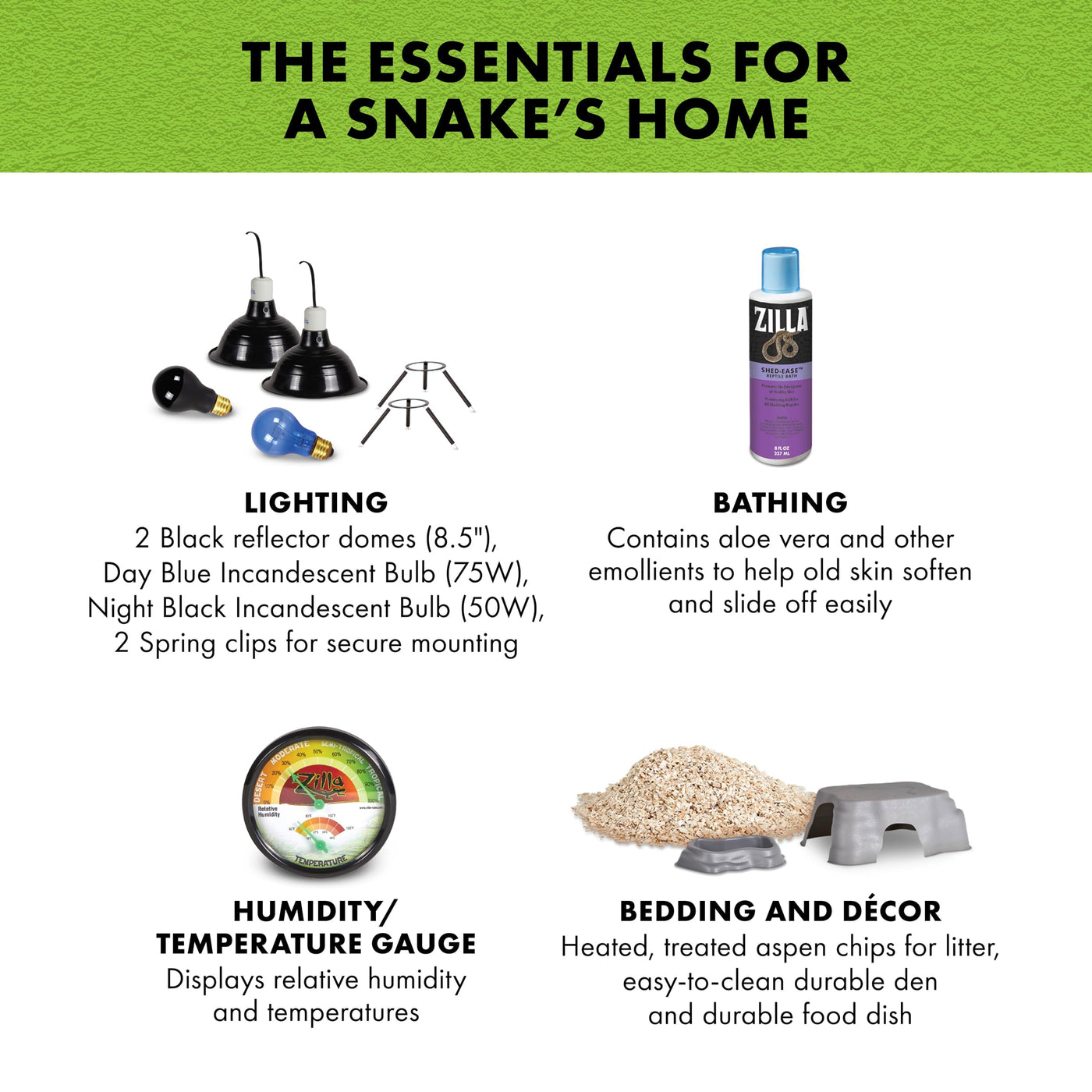 Zilla Snake Habitat Accessory Kit, Easy Starter Kit for Snakes, Includes Lighting, Bedding, Shedding Solution, Shelter and Feedi
