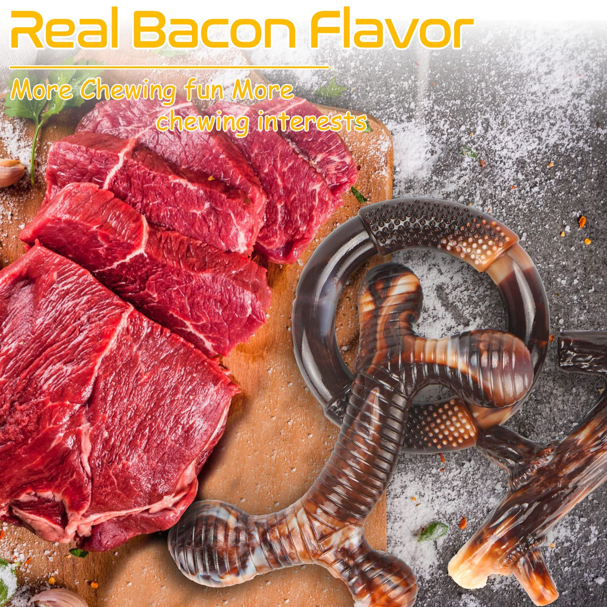 Zimtty Dog Toys, 3 Pack Indestructible Dog Chew Toys For Aggressive Chewers, Tough Nylon Real Bacon Flavor Teething Chew Toys Fo