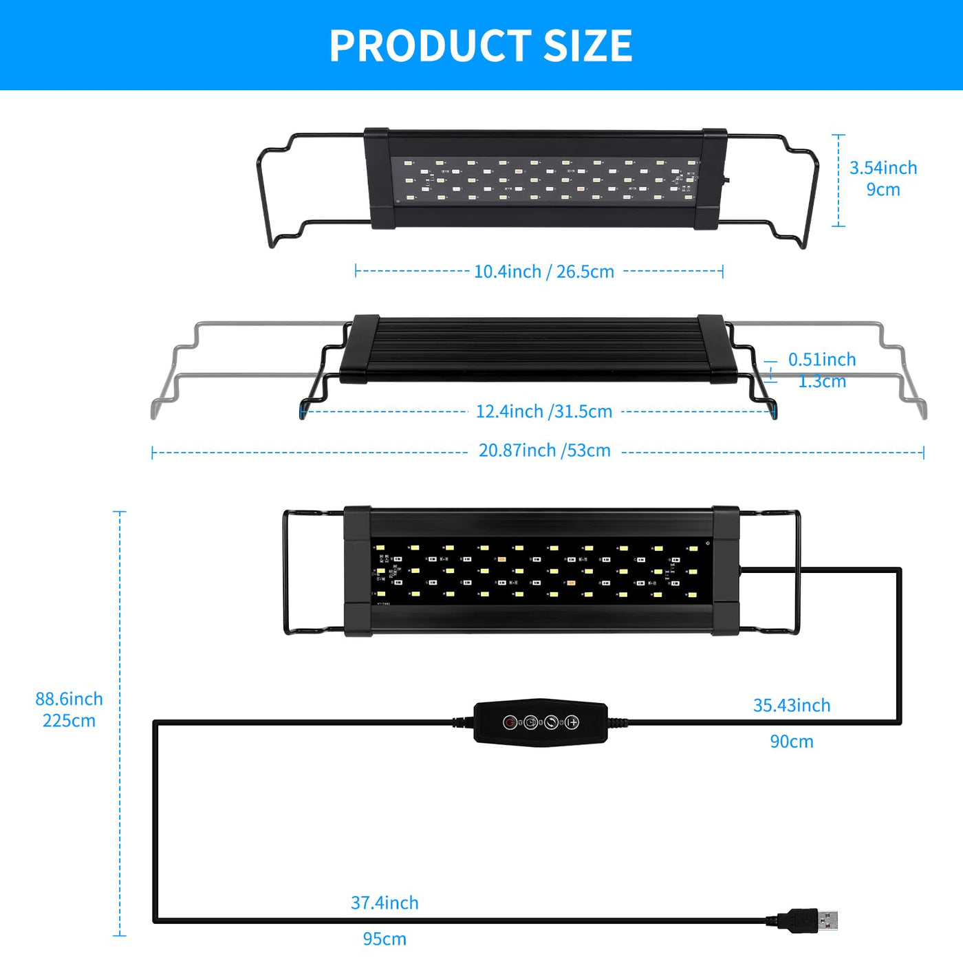 Zingbabu USB Aquarium Light,10W Full Spectrum Fish Tank Lights with Timer, Adjustable Extendable Bracket for 12-20 Inch Aquarium