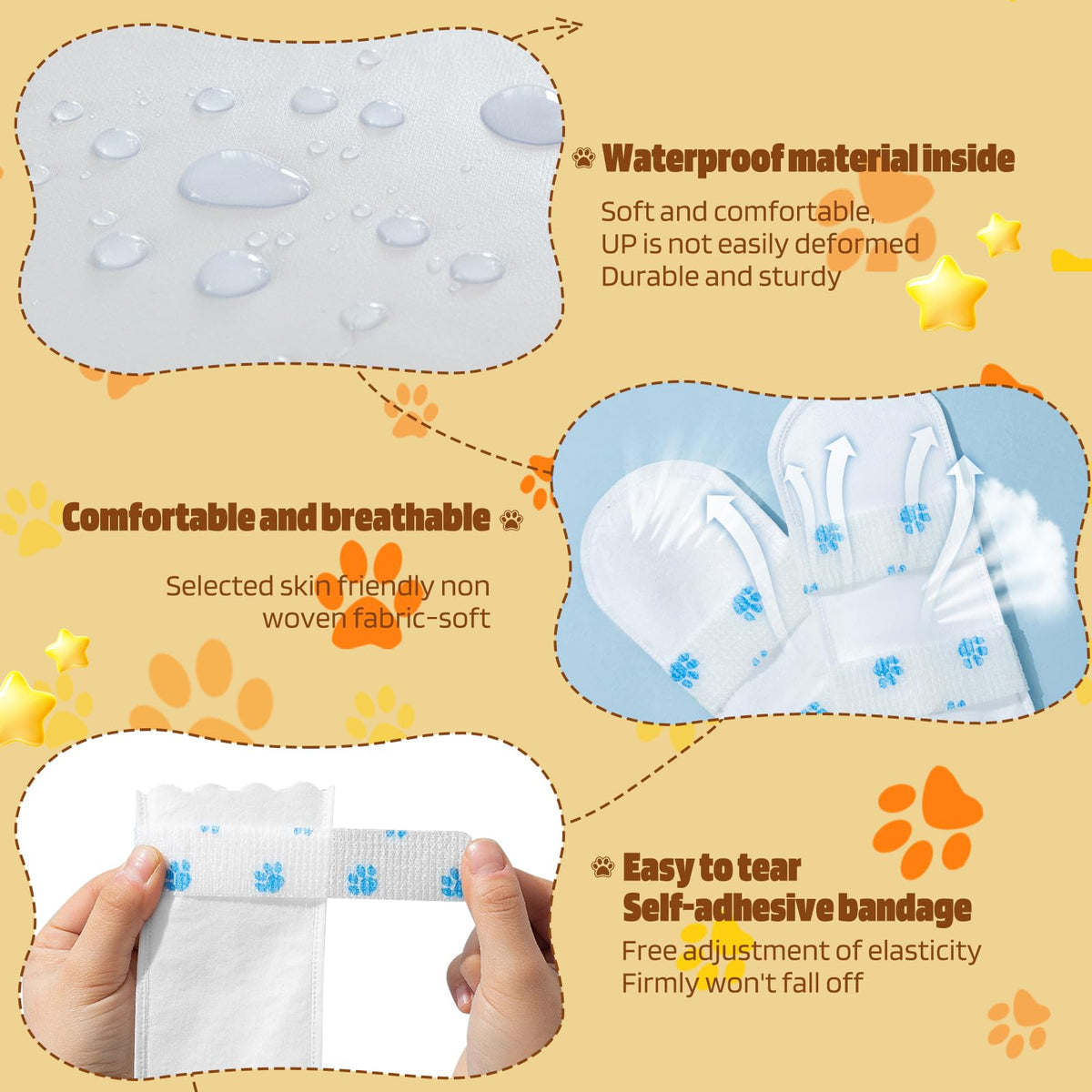 ?Premium Material?These dog booties protectors are made of lightweight breathable and soft non-woven fabric. The soft design takes care of your pet's paws ensuring excellent protection.