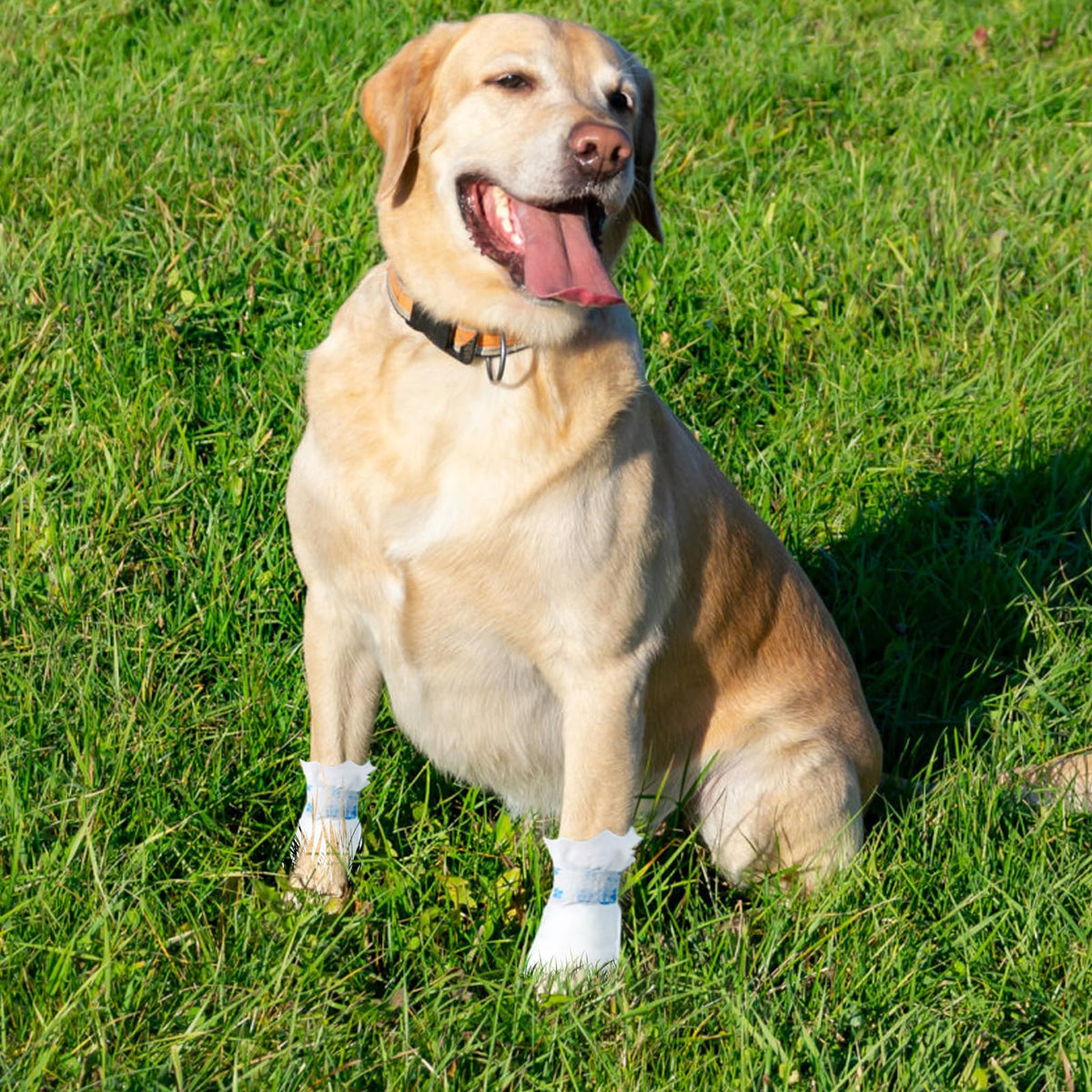 ?Easy to Wear?Easy to use with the bandage according to the size of the feet. First remove the shoe cover open the ankle opening remove proper length of bandage to secure the foot cover. The pet shoe cover is intact ensuring that the dog's wound is not affected by licking or scratching.