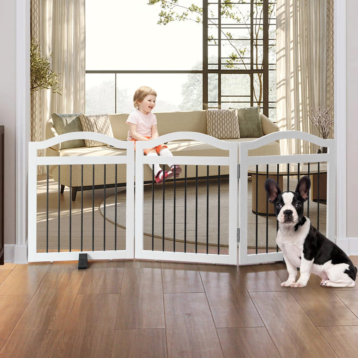 Zjsf Freestanding Foldable Dog Gate Indoor, Pet Gate For Doorways, Dog Fence For The House, Sturdy Wood Puppy Gate For Stairs, White Dog Gates With Support Feet For Hallways, 24 'Height-3 Panels