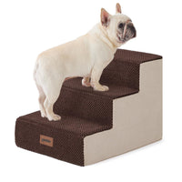 Zomisia Dog Steps For Couch - Pet Stairs For Small Dogs And Cats, Dog Steps With Non-Slip Bottom Grey 3 Steps, Brown
