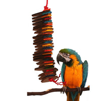 Made of slices of cardboard and slices of pine wood with sisal rope.This hanging toy with its movable cardboard and colored wooden slats means you can keep changing the shape, almost making a new toy each time!