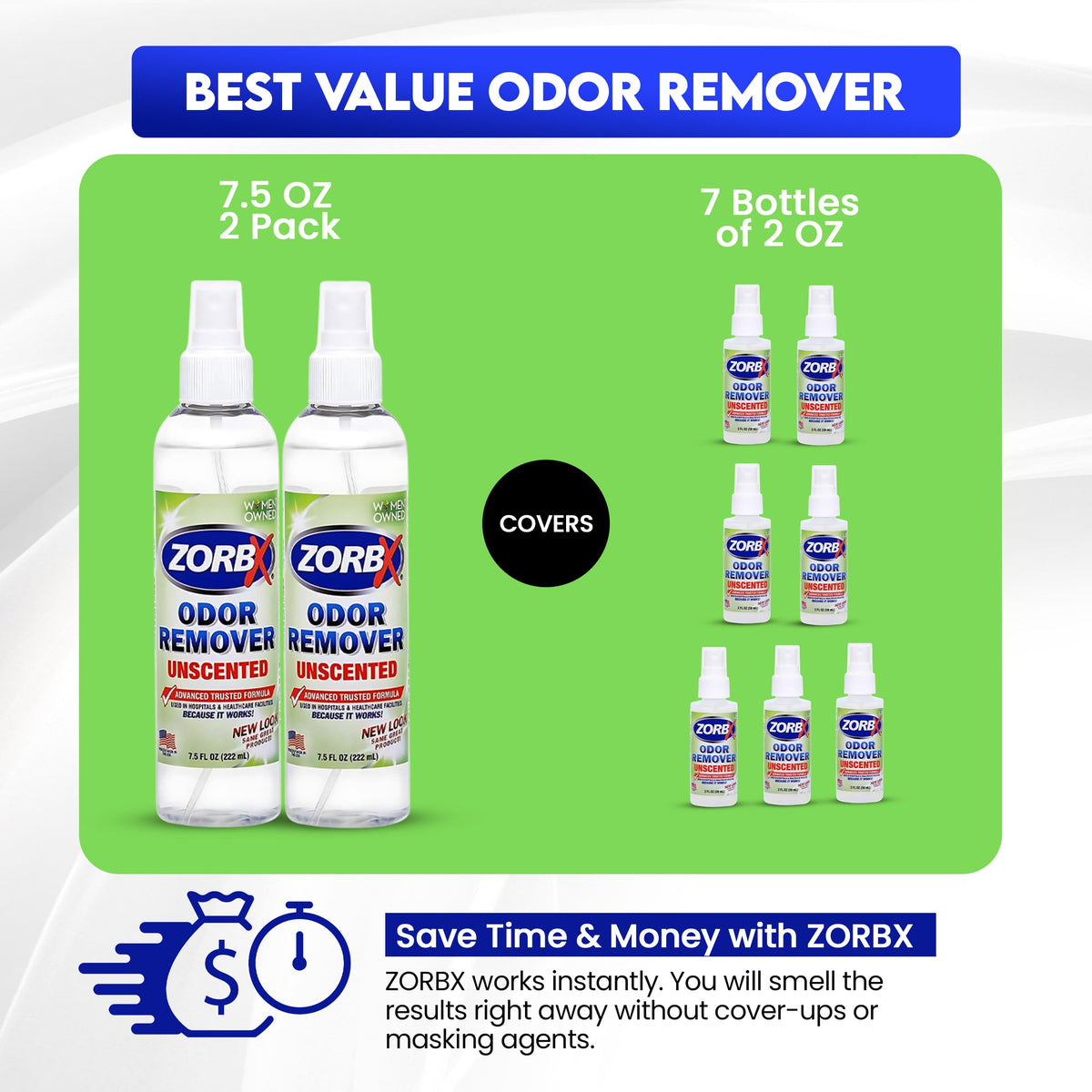 Zorbx Unscented Odor Eliminator For Strong Odor 7.5 Fl Oz Pack Of 2 - Used In Hospitals & Healthcare Facilities - Advanced Formu