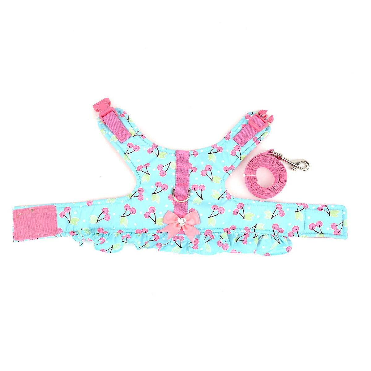 Zunea No Pull Small Dog Girl Harness Dress Escape Proof Cat Kitten Vest Harness Leash Set Step-in Soft Cotton Padded Cherry Prin