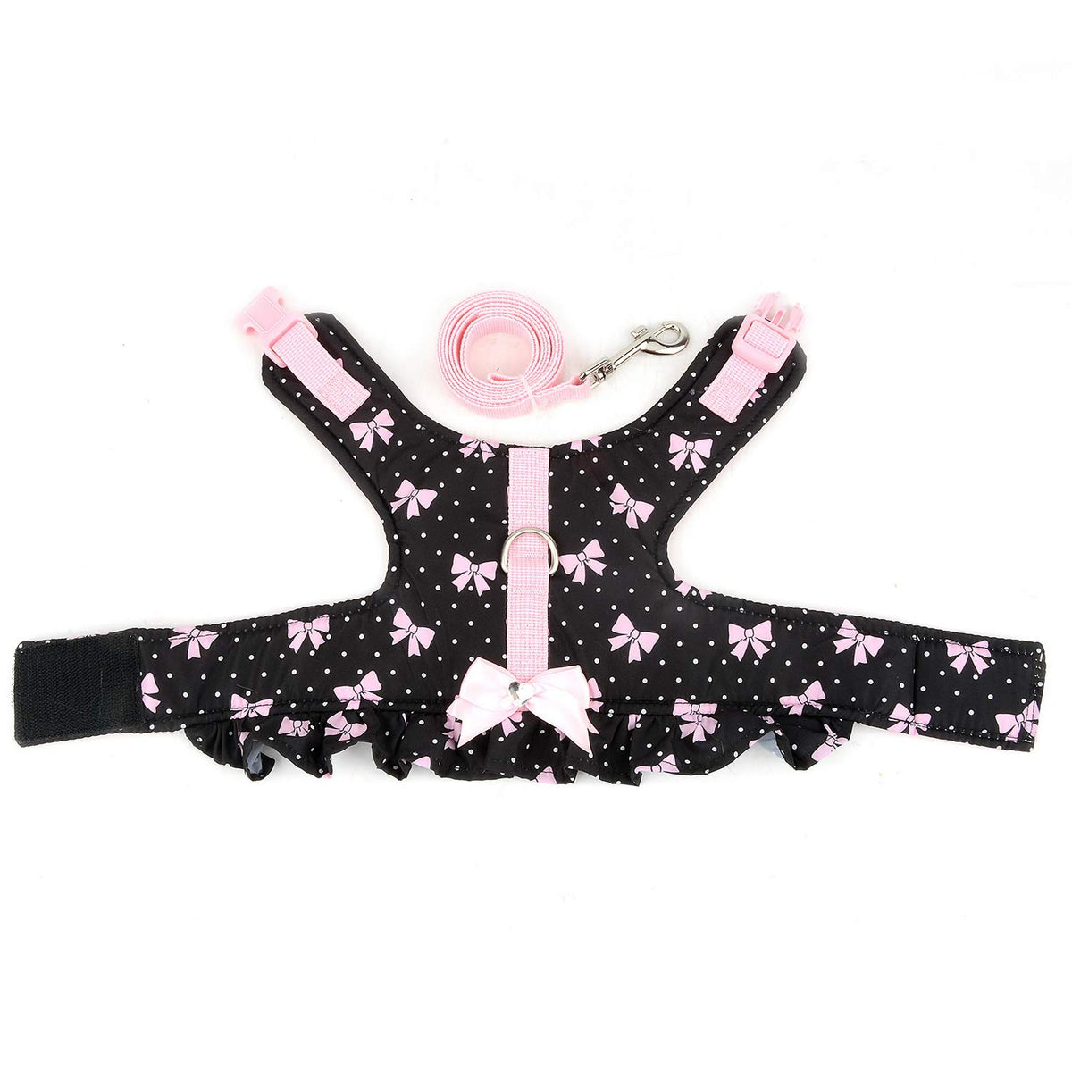 XS: Chest: 31-35cm/12.2-13.7inch, Neck: 21-24cm/8.2-9.4inch, reference weight: 1.5-3kg/3.3-6.6lbs; fit for cats, miniature dogs. (DONT choose the size as usual, Please choose the size according to the NECK GIRTH & CHEST GIRTH, thanks.) | Material -- Made of high-quality fabric, cozy cotton padded, super soft and comfortable to wear. Vest dress design make it no pull/no choke for your fur baby. | Unique Design -- Different patterns and colors for different girl puppy, like striped, polka dot, floral, denim, cherry and flowers, and cute bow attached, make your pet baby more adarable and attractive. | Easy to Wear -- Magic strap on the chest and quick release snap on the neck, make it very easy to put on and take off. | Ideal for -- This dress harness runs very small, only fit for miniature dogs, small dogs, cats, like chihuahua, puppy, toy poodle, pug, shih tzu, yorkie etc. For daily walking, outdoor training, running etc. Also for party, photos and so on.