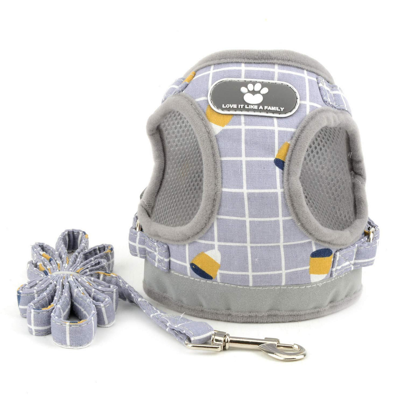 Zunea No Pull Small Dog Harness And Leash Set Adjustable Reflective Step-In Chihuahua Vest Harnesses Mesh Padded Plaid Escape Proof Walking Puppy Jacket For Boy Girl Pet Dogs Cats Gray L