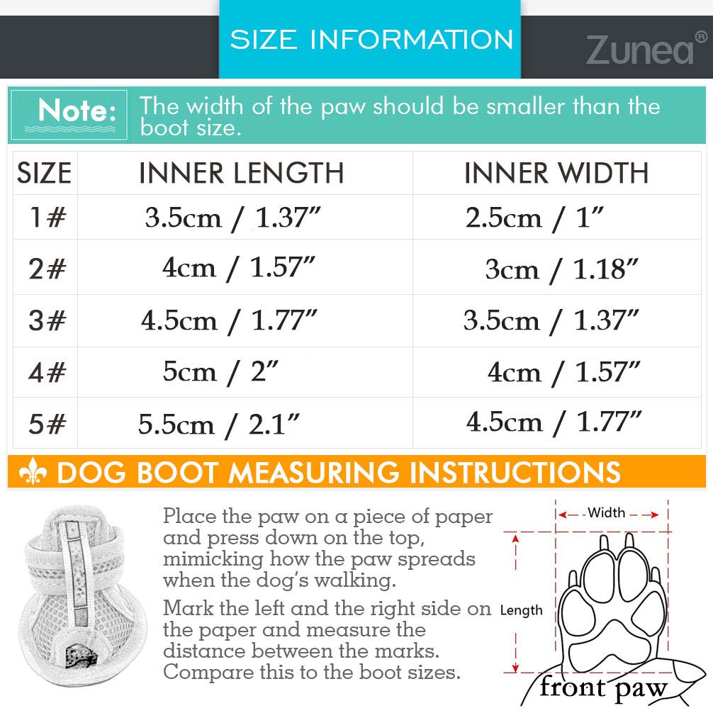 Q: How do I measure my dog's paw for the Zunea Summer Dog Shoes?A: To measure your dog's paw, place their front paw on a piece of paper and trace around it. Measure the width and length of the traced outline, then add 1 cm to both dimensions for a proper fit. It's important to ensure your dog is putting weight on the paw while measuring.
