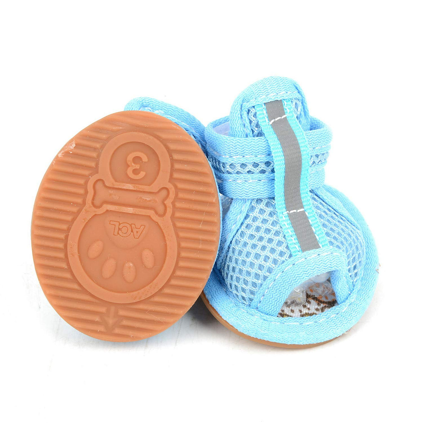 Zunea Summer Dog Shoes For Hot Pavement Breathable Mesh Sandals Puppy Anti Slip Paw Protectors Adjustable Reflective For Boys Girls Pet Small Dog Cat Chihuahua Blue 3#