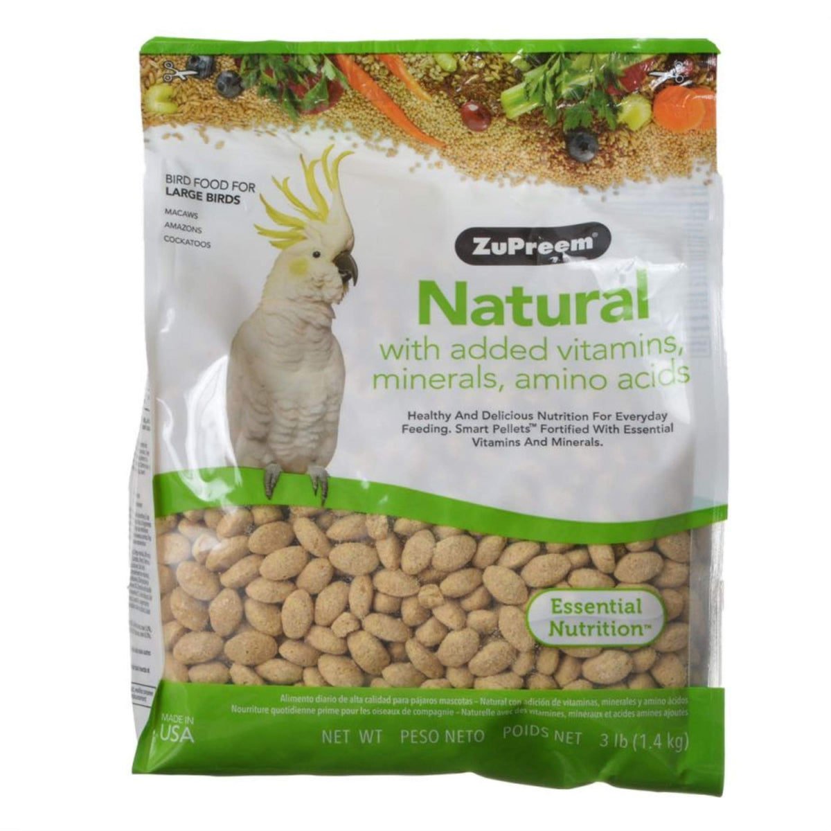 Zupreem natural is fresh, wholesome natural bird food made with vegetables and precisely formulated with the essential vitamins, minerals and amino acids your bird needs every day.